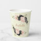 Joli cup en papier romantique avec des fleurs roses blush et noires et quelques feuilles jolies .