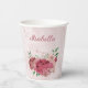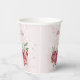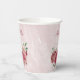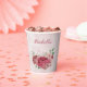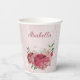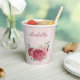 Joli mug en papier romantique avec des fleurs roses et roses poudrées et quelques feuilles vertes .