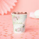 fleurs roses romantiques avec feuilles vertes tasse en papier botanique