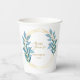 Une belle tasse en papier de douche nuptiale dans un design floral bleu et or. Correspond aux plaques de papier de la même conception.