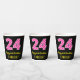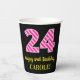 Gobelets En Papier Fun Pink Stripes "24" : Joyeux 24ème anniversaire