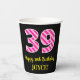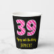 Gobelets En Papier Fun Pink Stripes "39" : Joyeux 39ème anniversaire