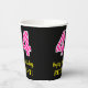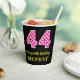 Ce joyeux autocollant carré à thème d'anniversaire comporte un grand numéro "44" avec un motif rose clair et rose foncé rayures, avec le message "Happy 44th Birthday,", plus un nom personnalisé. L'arrière - plan est noir de couleur. Des tasses de papier sur le thème de l'anniversaire comme celle-ci peuvent être amusantes à utiliser lors d'une fête d'anniversaire organisée pour quelqu'un qui célèbre son 44e anniversaire. [~Z0000580]