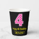 Gobelets En Papier Fun Pink Stripes "4" : Joyeux 4ème anniversaire +