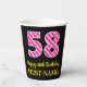 Gobelets En Papier Fun Pink Stripes "58" : Joyeux 58ème anniversaire