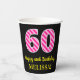 Gobelets En Papier Fun Pink Stripes "60" : Joyeux 60ème anniversaire