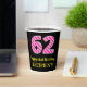 Ce joyeux autocollant carré à thème d'anniversaire présente un grand numéro "62", avec un motif rose foncé et rayures rose clair. Il comporte également le message "Happy 62nd Birthday," et un nom personnalisable. L'arrière - plan est noir de couleur. De jolies tasses en papier comme celle-ci peuvent être amusantes à utiliser lors d’une fête en l’honneur du soixante-deuxième anniversaire de quelqu’un. [~Z0000580]