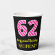 Gobelets En Papier Fun Pink Stripes "62" : Joyeux 62ème anniversaire