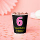 Ce joyeux autocollant carré à thème d'anniversaire présente un grand numéro "6", avec un motif à rayures rose clair et rose foncé. Il comporte également le message "Joyeux 6e anniversaire", ainsi qu'un nom personnalisé. L'arrière - plan est noir de couleur. Des tasses de papier sur le thème de l’anniversaire comme celle-ci pourraient être une façon amusante de célébrer le sixième anniversaire de quelqu’un. [~Z0000580]