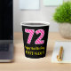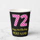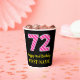 Ce joyeux autocollant carré à thème d'anniversaire présente un grand numéro "72", avec un motif à rayures rose clair et rose foncé. Il comporte également le message "Joyeux 72e anniversaire", ainsi qu'un nom personnalisé. L'arrière - plan est noir de couleur. Des tasses de papier comme celle-ci peuvent être utilisées pour célébrer le 72e anniversaire de quelqu’un. [~Z0000580]