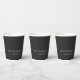 Add a touch of humor to your gathering with these funny personalized paper cups in black featuring the cheeky phrase "please leave by 9 PM" and customizable family or host name below. The minimalist design makes these perfect for casual dinner parties, housewarming events, or any get-together where a little wit is welcome. Both practical and entertaining, these are sure to make your guests smile. A fun and stylish addition to your table setting or a unique host gift idea!