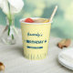 The design features bold blue retro typography on a creamy butter-yellow background, complete with the iconic tablespoon measurement markings wrapped around the base in blue. Whether you're hosting a kitschy brunch, a bake-off, or a milestone birthday, these cups are a delightful way to serve everything from iced coffee to party punch.