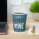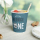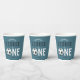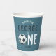 Ce modèle de coupe en papier anniversaire de enfant, mignon et moderne, sur le thème du sport, présente une illustration de sport de superstar bleue, avec un ballon de football qui compose le mot "one". La tasse peut être personnalisée avec votre nom de garçon, et la date de la fête. L'ajout parfait au premier anniversaire de votre enfant sur le thème du sport.