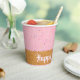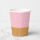 Personnalisez ces gobelets en papier pour anniversaire avec un motif de glace avec des paillettes et un cône rose. Super mignon avec un cornet gaufrette en bas.