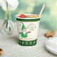 Créez des tasses de papier vert de Noël personnalisées uniques pour votre fête de famille avec un design mignon qui comporte un joyeux dicton de Noël, illustration gnome et modèles de texte pour l'année et nom de famille.