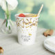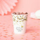 Gold Confetti Classe of Graduation Party Paper Cups. Script tendance avec confetti doré et chapeau de graduation doré. Ajoutez le nom de votre grand. Vous pouvez modifier le numéro d'année.