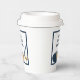 Create personalized party supplies for birthday parties and more to celebrate your favorite golfers. These paper cups feature my realistic style illustration of a golf club and golf ball in shades of blue and gold and your custom message in coordinating navy blue. The message and graphic appear inside of a navy blue frame on the front and back of this cup.