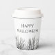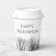 Happy Halloween fêtes gothique tasses de papier, avec des lettres typographiques éffrayantes et un design noir et blanc effrayant. Un grand complément à votre fête d'Halloween ou d'automne.