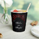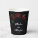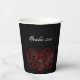 Ces tasses en papier rouge et noir et blanc victorien gothique sont parfaites pour les mariages ou les fêtes d'Halloween, avec un cadre tourbillonnant orné, à l'ancienne, fêlé avec l'âge, recouvert de toiles éffrayantes, contre un arrière - plan noir légèrement texturé et maussade. Le texte est une combinaison de script grunge, classique facile à lire en bloc, et vieux anglais, type de style médiéval.