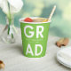 Coupes de papier graduation personnalisées avec "Grad" en lettres blanches en gras avec un arrière - plan vert citron ou couleur de votre choix. Personnalisez les tasses de papier de graduation en ajoutant le nom du diplômé et l'année de graduation. Les tasses de papier vert citron sont parfaites pour les fêtes de fin d'études secondaires et collégiales.