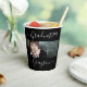 Graduation Class of Paper Cups with Graduation Photo and Hand Lettered Titre du diplômé pour les parents fiers de célébrer le succès de leurs élèves! Catégorie et année de la graduation et nom du diplômé. Classe de et votre année d'études supérieures pour le diplômé. Citations et déclarations typographiques.