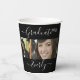 Graduation Class of Paper Cups with Graduation Photo and Hand Lettered Titre du diplômé pour les parents fiers de célébrer le succès de leurs élèves! Catégorie et année de la graduation et nom du diplômé. Classe de et votre année d'études supérieures pour le diplômé. Citations et déclarations typographiques.