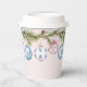 Cette tasse en papier présente un motif extensible de Pink and Blue Ornaments sur une branche à feuillage persistant sur un arrière - plan rose vif. Vous pouvez personnaliser avec votre nom.