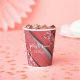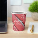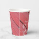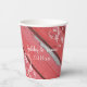 Personnalisez ces charmantes gobelets en papier pour mariage de campagne avec du bois de grange rouge rustique et des fleurs blanches pour votre réception de mariage décontractée mais élégante à la ferme ou pour une fête de douche de nuptiale dans une grange. Ces gobelets jetables informels mais élégants présentent une photographie de ferme en gros plan de bois de grange rouge patiné et ébréché avec des fleurs blanches ornant les coins.