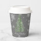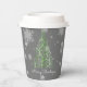 Sirotez vos boissons de Noël préférées avec un ensemble festif de tasses en papier d'arbre de Noël vert et de flocons de neige. Le design de la tasse en papier présente un sapin de Noël artistique vibrant avec des flocons de neige en chute et un arrière - plan gris foncé. Autres cadeaux et objets de vacances disponibles avec ce design aussi.