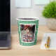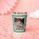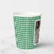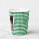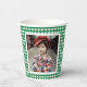 Tasses en papier avec modèle photo et envelopper autour des chèques en vichy verts design. Téléchargez une photo du garçon ou de la fille d'anniversaire. Des tasses peuvent également être achetées avec des couvercles.