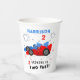 Growing Up Two Fast 2nd Birthday Kids Racing Cars Toddler Party Paper Cups présente une jolie et colorée voiture de course avec le texte "Growing Up Two Fast" dans le script de typographie moderne accentué avec le numéro 2 et doodles. Personnalisez avec votre nom personnalisé. Parfait pour les enfants fêtes de deuxième anniversaire. Conçu par Evco Studio. Pour la coordination des éléments, voir www.zazzle.com/store/evcostudio