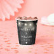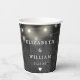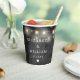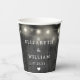 Ces gobelets en papier pour mariage de grange avec guirlande lumineuse en bois noir rustique boho peuvent être personnalisés avec vos informations dans une typographie chic. Conçus par Thisisnotme©
