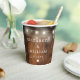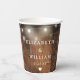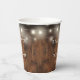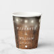 Ces gobelets en papier pour mariage grange bohème à guirlande lumineuse rustique en bois peuvent être personnalisés avec vos informations dans une typographie chic. Conçus par Thisisnotme©