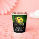 Cette tasse en papier amusante et éffrayante présente de mignons monstres Frankenstein à côté d'une maison hantée. Dans l'arrière - plan est une pleine lune avec des chauves-souris et un ciel de nuit vert avec des étoiles. C'est parfait pour Halloween.