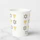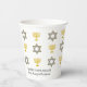 Elégant HAPPY HANOUKKA tasse de papier, montrant faux or et argent STAR OF DAVID et MENORAH dans un motif carrelé. Le texte lit HAPPY HANOUKKA avec un nom d'espace réservé et est PERSONNALISABLE, vous pouvez donc le PERSONNALISER en ajoutant votre nom ou un autre texte. Idéal pour les célébrations Hanoukka, et avec personnalisation peut être adapté à n'importe quel événement sur le thème juif. Choisissez parmi une large sélection de produits Hanoukka Party de Berean Designs.