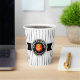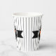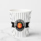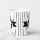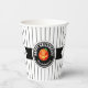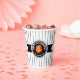 Cette tasse en papier présente un citrouille Halloween sur un étiquette noir rond avec le texte 'Happy Halloween'. Personnalisez avec votre nom ou autre texte. Arrière - plan est un motif étroit rayé noir et blanc. Cherchez ID212 pour voir d'autres produits avec cette conception.