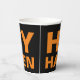 Pour ceux qui n'aiment pas beaucoup d'histoires ou de foulures cette tasse en papier dispose d'un design simple avec le type. Cette tasse à thème d'Halloween est ornée d'un arrière - plan noir basique. En orange, les mots "HAPPY HALLOWEEN" enveloppent la tasse. Il y a une image d'un citrouille à la place du "o", dans le mot "HALLOWEEN".