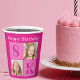 Chic 2 photo personnalisées heureux fête d'anniversaire tasse de papier pour une petite fille ou tout petit. Célébrez l'anniversaire de votre enfant avec de jolies photos d'eux sur ce ajouter votre propre design photo avec un rose chaud. Ajoutez leur nom et leur âge.
