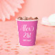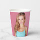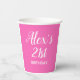 Coupe de papier de fête de 21e anniversaire rose chaud personnalisée avec le nom et l'âge de l'invitée d'honneur sur le devant et sa photo sur le dos