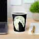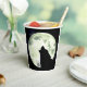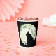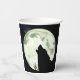 Ces tasses en papier ont un loup hurlant représenté sur elles.