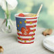 Ces tasses de papier chaud/froid robuste présentent le design patriotique délicieusement original de Leslie Sigal Javorek basé sur l'American Flag : avec alternance des rayures potées à pois de polka de rouge et blanc ; un bloc bleu pois dans le coin gauche ; surmonté d'une couronne d'étoiles de couleur moutarde épicée entourant un coeur rouge brun proclamant "J'aime les USA !" Option pour ajouter un couvercle !