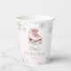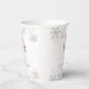 Beautiful ice-skating birthday paper cups featuring soft pink tones, elegant silver glitter snowflakes, and watercolor ice skates. Perfect for winter birthdays and girls skating parties.