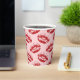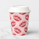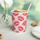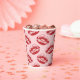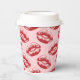 Rouge rouge à lèvres embrasse motif sur arrière - plan rose clair.