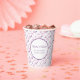 Si vous prévoyez une douche Jack et Jill pour la mariée et le marié, ces tasses vous feront le tour dans les motifs floraux violets. Correspond aux plaques de papier dans le même design.