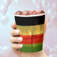 Rasta jamaïcain colle rouge, vert, jaune or et noir tasse de papier avec plage et arrière - plan de palmier. Idéal pour des vacances en Jamaïque ou pour les amoureux de la culture insulaire / caribéenne.