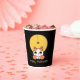 Cette tasse en papier présente un mignon chat avec les yeux retournés à une araignée portant un casquette de sorcière, pendant devant une lune d'or. Il s'agit d'un design d'Halloween fantaisiste adapté aux enfants de tous âges. Recherchez ID865 pour voir d'autres produits avec cette conception.