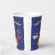 Cette mignonne tasse en papier d'Halloween présente des chattes adorables avec des casquettes sorciers et une lanterne de jack o' sur un arrière - plan étoilé violet. Texte "Happy Halloween" en vert éffrayant. Facile à customiser en cliquant sur "Personnaliser". Parfait pour votre fête d'Halloween.