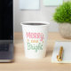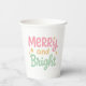Coupes de papier moderne de Noël avec un design mignon et amusant avec "Joyeux et lumineux" dans du papier décontracté rose pastel et vert joyeux.