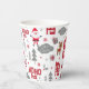 Cute Christmas Père Noël Reindeer Winter Holidays Paper Cups présente un mignon motif d'un Père Noël fantaisiste avec rennes et arbres de Noël et le texte "Ho Ho Ho" dans la typographie rouge moderne. Parfait pour la décoration et les cadeaux de la maison. Conçu par ©Evco Holidays www.zazzle.com/store/evcoholidays