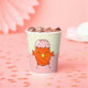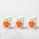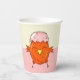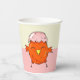 Mignonne poule de Pâques avec des tasses en papier de fond de dessin en coquille. Ces adorables tasses en papier de Pâques présentent une mignonne poussette orange avec une coquille d'oeuf perchée sur la tête ! Le joyeux arrière - plan est dans le jaune et le rose doux. Parfaites pour les fêtes de Pâques, ces tasses apporteront une touche festive à votre rassemblement.